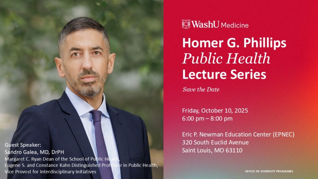 We are excited to announce that Dr. Sandro Galea, Margaret C. Ryan Dean of the School of Public Health, will be the guest speaker for the 29th Annual Homer G. Phillips Public Health Lecture Series on Friday, October 10!