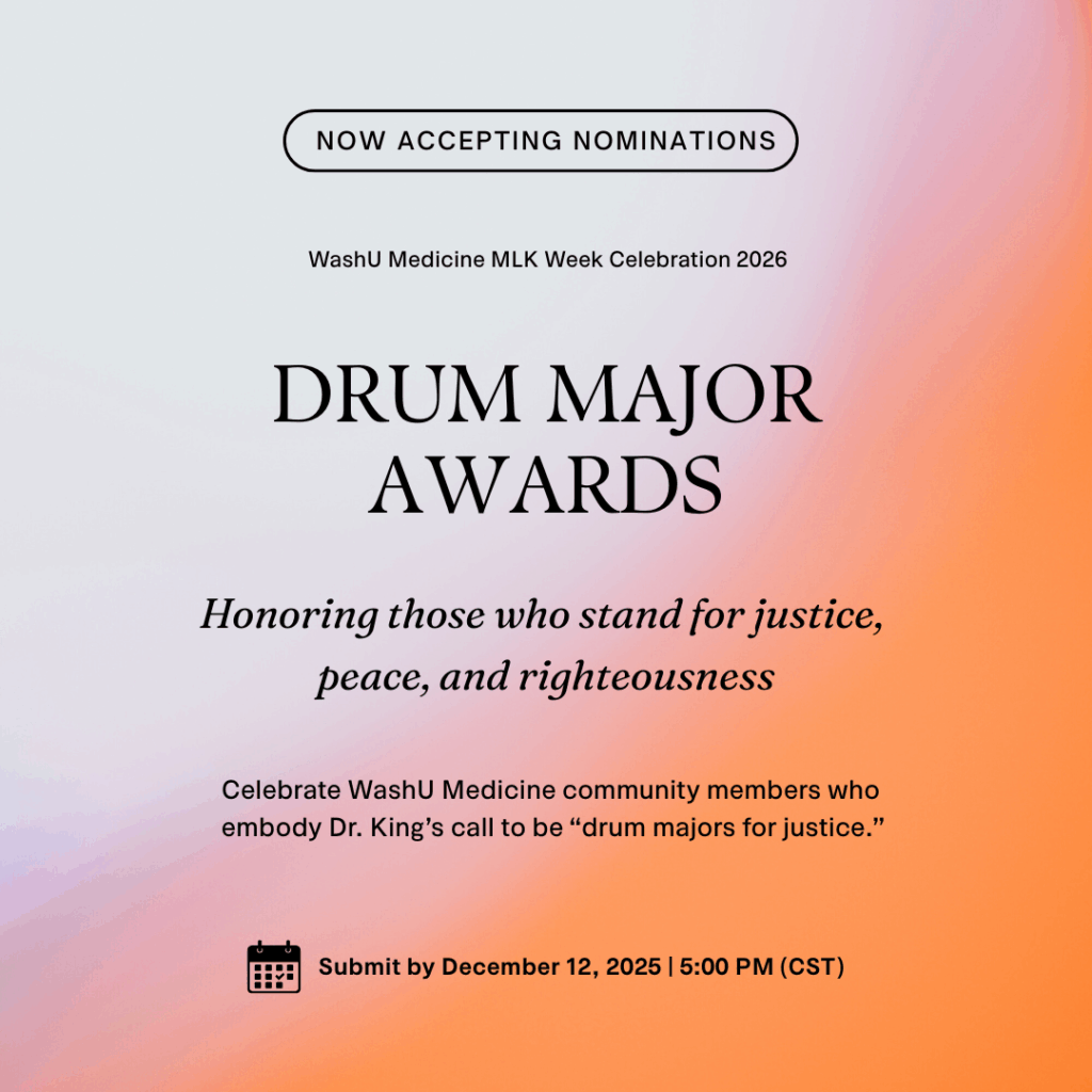 Inspired by Dr. Martin Luther King Jr.’s 1968 sermon “The Drum Major Instinct,” the Drum Major Awards honor WashU Medicine community members who embody Dr. King’s call to be “drum majors for justice, peace, and righteousness.”