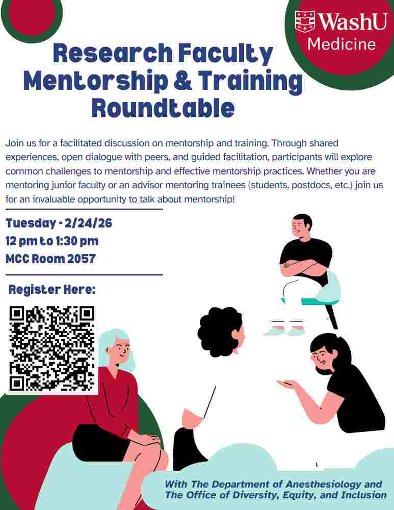 Individuals with disabilities are encouraged to attend all WashU Medicine sponsored events. If you are a person who requires reasonable accommodation to participate in this event, don’t hesitate to contact the WashU Medicine Office of Diversity, Equity, and Inclusion in advance at 314-273-2809 or MedDEI@wustl.edu.